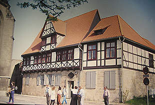 Der eigentliche Höhepunkt des Jahres 1992 war das Gautrachtentreffen, das im Juni in St. Georgen durchgeführt wurde. Für viele Mitglieder des Trachtenvereins war die Reise nach Halberstadt in Sachsen Anhalt viel eindrücklicher, weil zum ersten mal nach der Wende in die ehemlige DDR gefahren wurde. Land und Leute, sowie die Verhältnisse in den neuen Bundesländern selbst kennen zu lernen war etwas besonderes. In Halberstadt führte das Verkehrsamt, zur Förderung des Fremdenverkehrs, einen Schwarzwälder Abend durch, der vom Trachtenverein St. Georgen und der Trachtenkapelle Buchenberg bestritten wurde. Das Publikum war begeistert, zumal Volkstrachten in der früheren DDR nicht unterdrückt wurden. Am nächsten Tag konnte noch Halberstadt, sowie das malerische Quedlinburg, schon zu DDR-Zeiten ein Vorzeigeort, besichtigt werden. Auch hier zeigte sich, dass viele Häuser und Wohnungen, die nicht direkt im Zentrum sind, in sehr schlechtem Zustand waren. Mit der Erkenntnis, dass für den Aufbau Ost noch viel Geld benötigt wird fuhr man zurück in den Schwarzwald. | |