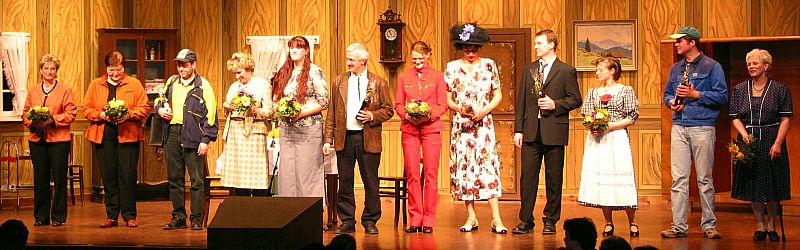 "Jedem die Seine und mir die Meine!" So der viel versprechende Titel, der an Aktionen reichen Aufführung. In der Hauptrolle Konrad Ruhig, ein Junggeselle, der etwas träge durchs Leben geht. Er wird gespielt von Lothar Jäckle. Doch kaum ist der gewitzt auftretende Schauspieler auf der Bühne, wird er auch schon durch seinen Freund Leo Raps (Benjamin Haas), in große Bedrängnis gebracht. Konrads Tante, Brauerei- und Gutshofbesitzerin Rosina Gerstenbrand (Ursula Jäckle), feiert ihren 75. Geburtstag und will wegen der Vererbung ihres Besitzes ihren Neffen Konrad samt seiner Braut Simone Hell (Sandra Weißer), bei sich haben. Dann sind Matze der Briefträger und die etwas schwerhörige und kurzsichtige, Wörter verwechselnde Haushälterin Babett (Hermann Müller und Verena Haas), weitere Aktivposten der Aufführung. Laufbursche Franzl mit einem etwas vorlauten Mundwerk, wie das schüchtern auftretende Hausmädchen Stanzi, bei Rosina Gerstenbrand in Diensten, in deren Rollen sich Stefan Lauble und Verena Jäckle präsentierten, stand als Kraftpaket mit Stiernacken Max Ochsentöter (Bernhard Borho), Schlachthofbesitzer und Konservenfabrikant gegenüber. Seine Tochter Conni mimte Tanja Schlegel. Zur Textsicherheit trug Heidi Merkle im Souffleurkasten bei. Die musikalische Umrahmung besorgte die Trachtenkapelle aus Nußbach.