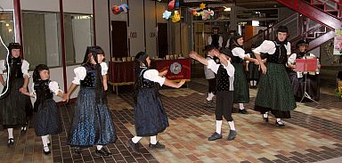 Feierlich eröffnet wurde die Veranstaltung in der Pausenhalle des Bildungszentrums durch Bürgermeister Schergel und den Vereinsvorsitzenden Hans Kohn. Zwischen den Redebeiträgen konnte die Jugendgruppe und die Jugendglockengruppe des Trachtenvereins St. Georgen die Gäste mit Volkstänzen und Glockenspiel unterhalten.